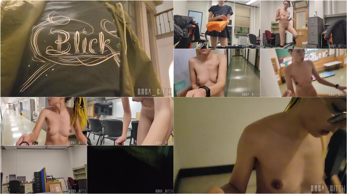 I spend too, too many hours on-campus studying and doing research. But with things so closed-down as they are, there are few events to keep me entertained… so I kind of have to create my own fun! I start off by scouting out the route one last time that I’ve been fantasizing about for days: I want to start on the first floor and streak all the way up to the big classroom on the fourth floor (that I genuinely teach and have class in!!). I feel the coast is clear, so I strip down completely and lock all my clothing in one of the grad offices before heading into the halls. I show off my full-body and bare-feet to you while I walk. I’m super duper scared because I have no idea who else could be in this building with me! I hear strangers in their labs and offices, and I hold my breath that no one catches me naked!! I make it to the fourth floor and stand naked and embarrassed in front of the classroom. I imagine what it’d be like if this room was full of clothed people, all watching me. I want to masturbate in front of the whole class, but all the noise in the halls has me too spooked! What if one of my students or classmates saw me fucking myself! I hurry back down to the first floor, and I’m almost certain that someone else is in the building because I can hear them. I can only hope they didn’t see my bare, exposed ass when I wasn’t looking!