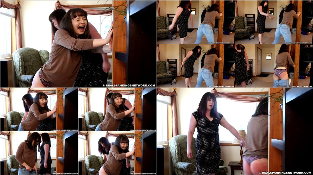 Ella is 30 minutes late getting home. No call, no text, nothing. Betty is extremely agitated because now they will miss this evening’s event. Ella is bent over and spanked hard with the boudoir paddle.