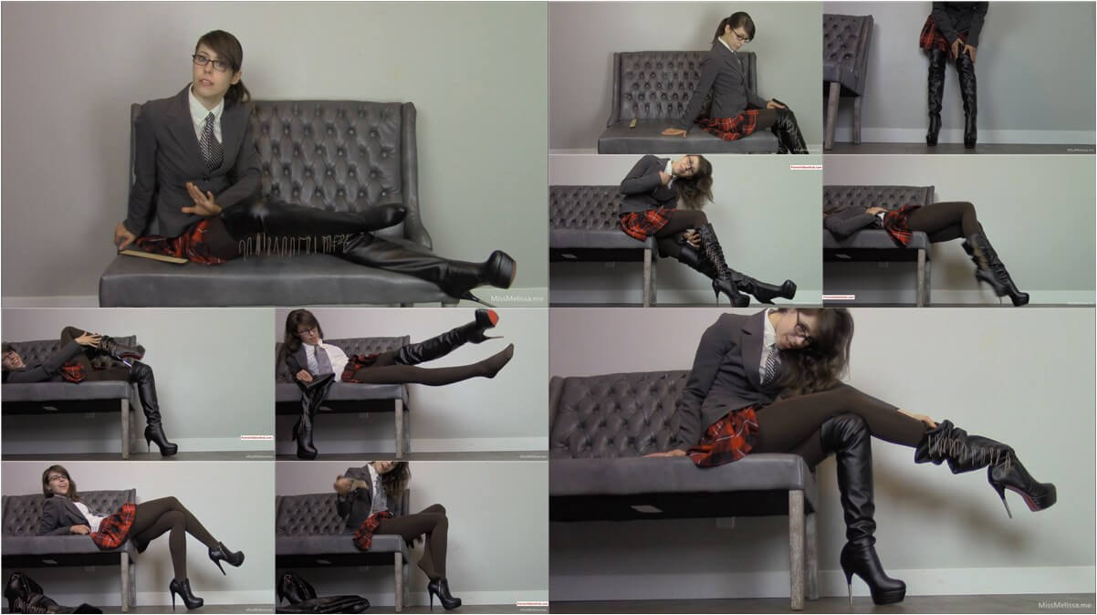 I am conducting a lecture on the topic of debooting. My students of fetish are watching and listening to me describe this niche fetish. I get really into it. I forget myself and proceed to do a full on boot tease for my students. For demonstration purposes only, of course! 😉 First, I start out in my high heeled platform thigh high boots, demonstrating the art of debooting. At the end of my lesson, I describe and show debooting process one more time on a pair of ankle boots with a very high heel. Lots of teasing and debooting over and over again in this roleplay video where I go from shy to show off.