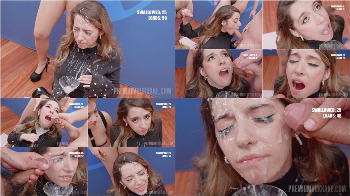Safira Yakkuza is not a newbie and gets straight to the action right from the very first moment she sees the guys dicks. This is actually her second bukkake, so she already knows what to do. This busty porn starlet sucks dicks like a real pro and the guys start to erupt cum with quite a pleasure. Safira kneels down and catches their cumshots. It doesn’t look like she’s fond of the cum taste as she reacts to each cumshot like it’s spicy or bitter. Nevertheless, she gulps, although in small portions and moves forward. The sperm overwhelms her already when she swallows bare 25 loads and she feels enough.. So far, the guys switch to her beautiful face and this experience only adds some charm to her mimics. She smiles, however cum gets into her eyes and she wrinkles, trying to sway it over. But a dense pack of 25 more cumshots makes a thick white mud on her face, finalizing this bukkake with an awesome picture!